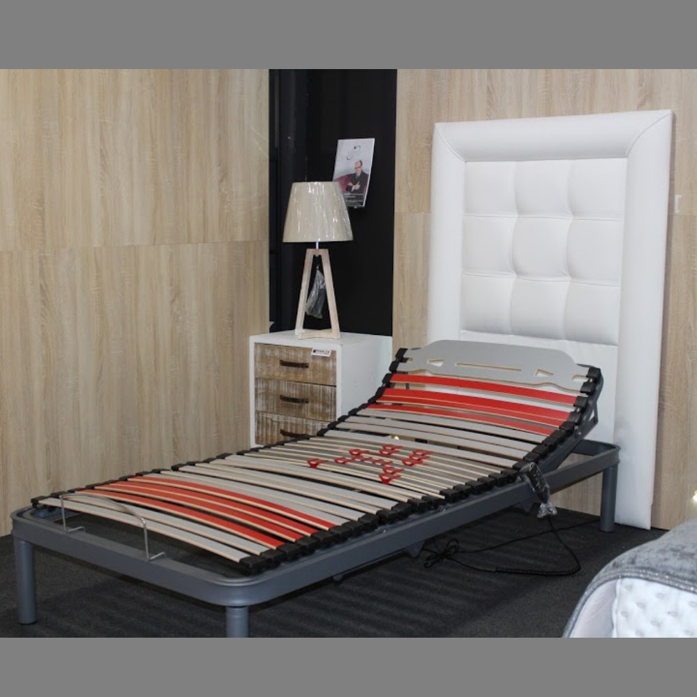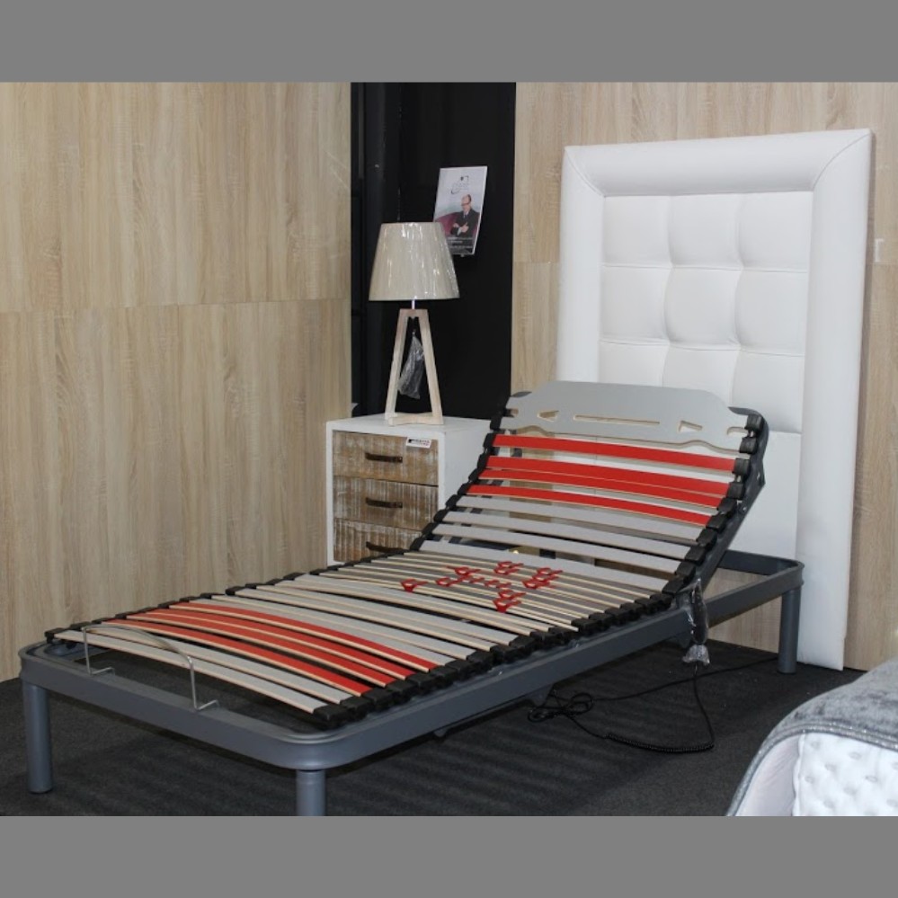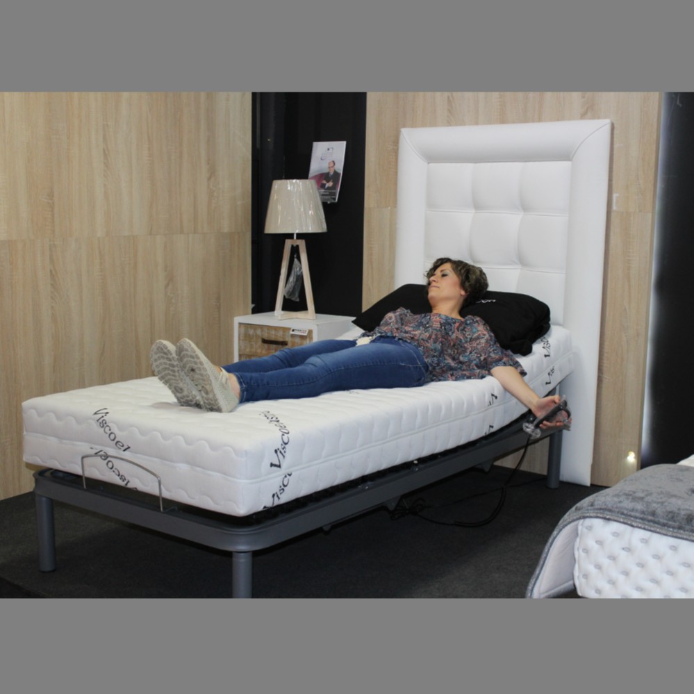 Cama motoriza con mando a distancia para un uso cómodo y fácil. Sus 5 planos de articulación se adaptan perfectamente a cualquier postura elegida, con láminas flexibles con reguladores lumbares sobre soportes Hytrel de alta calidad, flexibilidad y resistencia y se completa con un cómodo colchón viscoelástico especial para cama articulada.