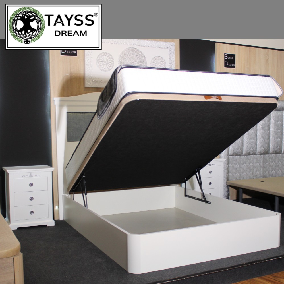 Canapé de gran capacidad de almacenamiento con esquinas frontales redondas para evitar roces o golpes y con tapa transpirable en tejido 3d. Colores blanco, cerezo o cambrian en medidas de 90, 105, 135 o 150.
