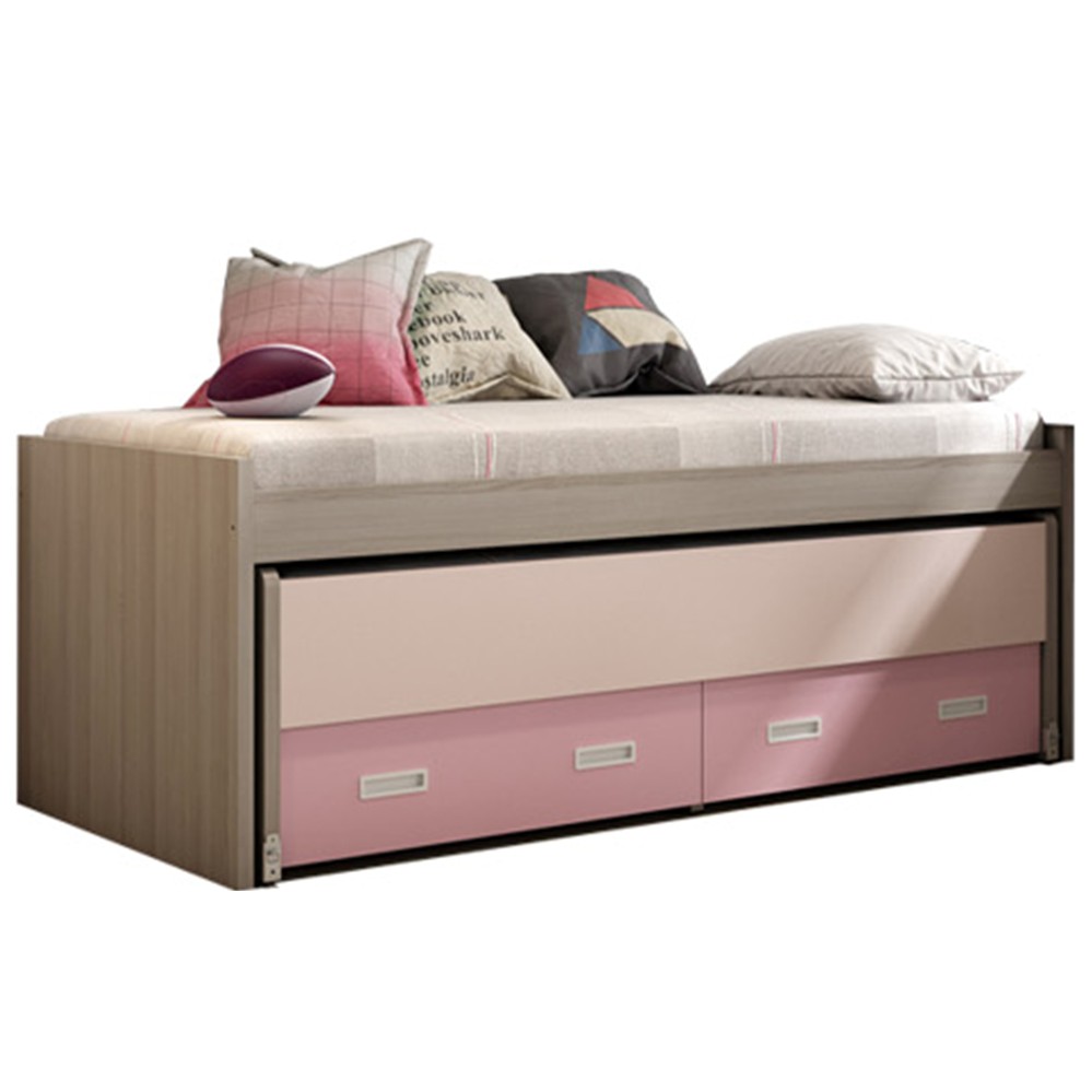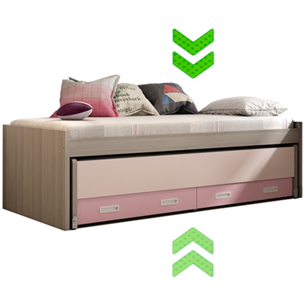 Los cajones llevan guías correderas y salen con la cama media, lo que facilita su uso porque al no estar sueltos, como en otros casos, no hay peligro de que se coloquen inadecuadamente y choquen, y al mismo tiempo al salir junto a la cama también facilitan la limpieza del hueco.