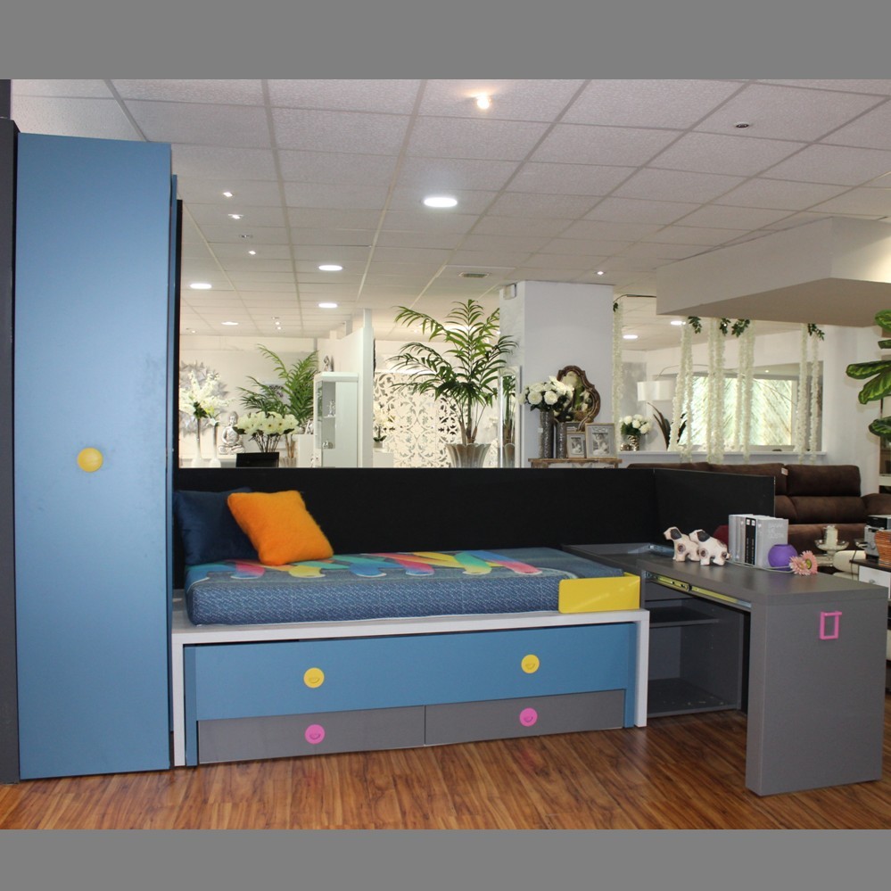 A veces tenemos necesidad de varias camas y nuestra habitación es tan pequeña que no sabemos cómo colocarlas y que al mismo tiempo sea útil y amplia dejando una zona para juegos o estudio cuando no se usan para dormir. Pues aquí tenemos la solución ideal.