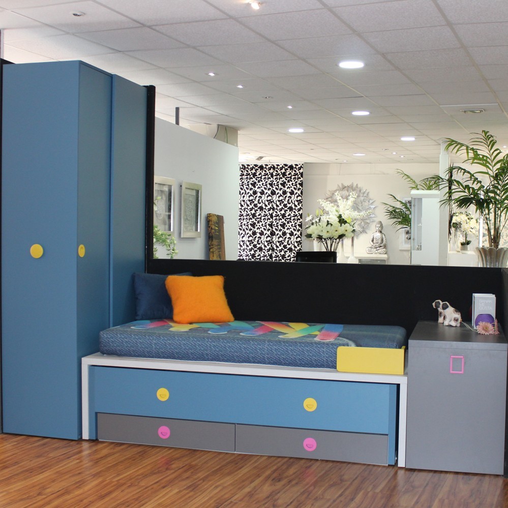 De forma que en solo 3 metros por 1 metro de fondo no solo hemos conseguido adaptar un dormitorio completo sino que además lo hemos hecho con los artículos más fiables y fuertes del mercado para un uso diario y cotidiano sin problemas, con la máxima calidad de fortaleza y acabados y con un sistema de fácil y fiable apertura.