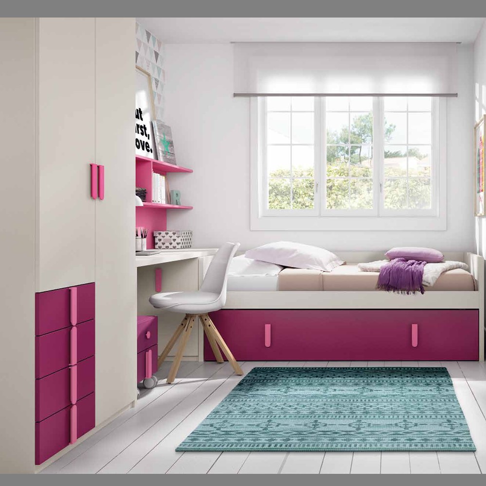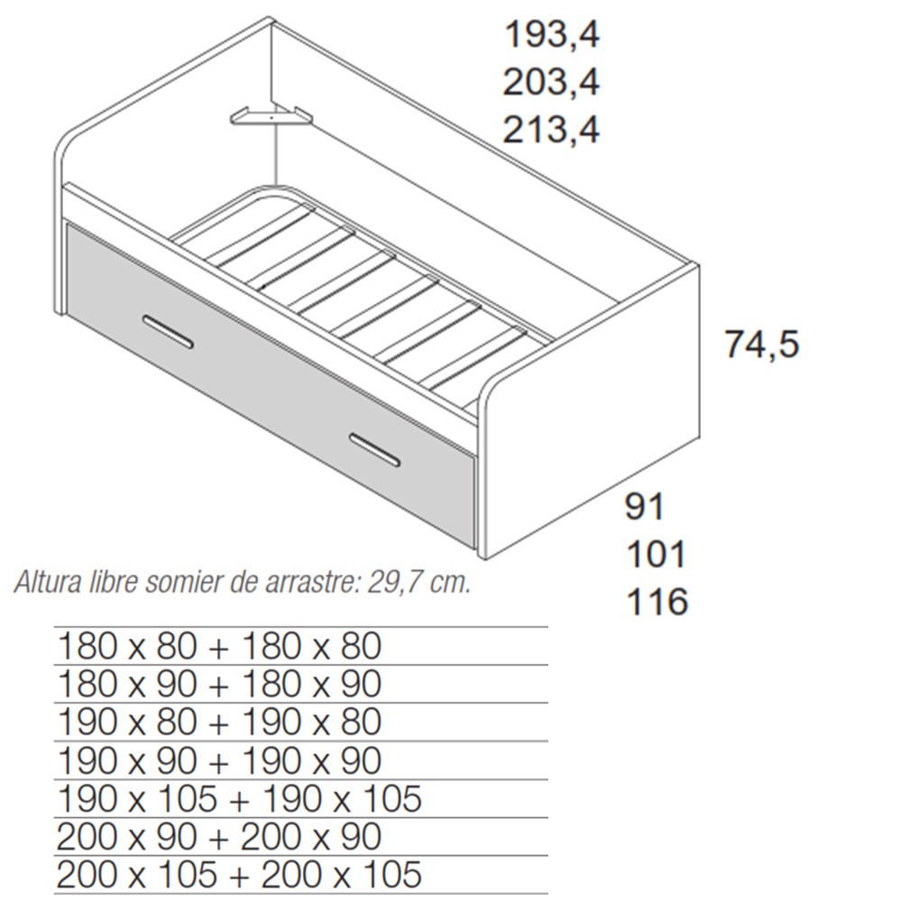 En el espacio de una sola cama tenemos dos camas fuertes de gran calidad, fácil uso y con una gran variedad de medidas para adaptarnos a tus necesidades. Porque los niños crecen y a veces necesitan camas de una medida superior en este modelo que aúna fortaleza y estética te podemos ofrecer medidas de cama tanto superior como inferior de 80, 90 y 105 por largos de 180, 190 o 200. Además con una cuidada estética con su respaldo y brazos curvos.