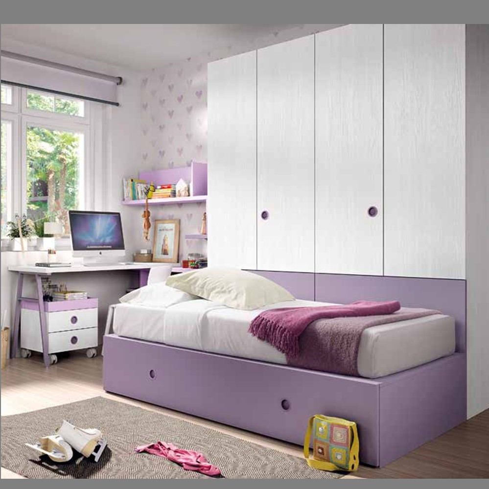 Y lo acompañamos de un práctico armario de gran capacidad con 3 opciones de altura diferente, puertas abatibles cómodas y que permiten un acceso completo fácil y total a la ropa doblada. Y por ultimo 2 huecos de un metro cada uno para ropa colgada.