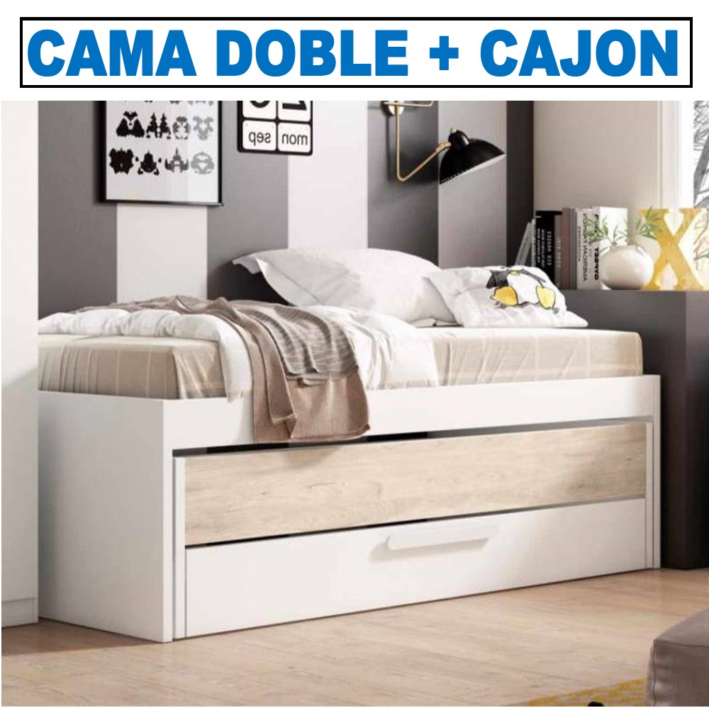 Cama superior para somier y colchón de 90×200, cama inferior desplazable para colchón y somier de 90×190, más cajón.