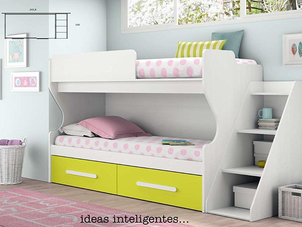 Cama Litera Con 2 Camas, 2 Cajones 90×190