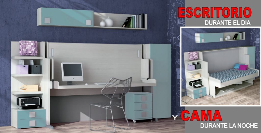 ¿Cama o escritorio? ¿Y porque no ambas cosas?, te imaginas montar tu despacho o estudio con una mesa de 2 metros y que con un simple giro la conviertas en una cama. Una forma de reunir en una sola habitación todas las funciones que necesitas. Esta es la mejor forma de optimizar el espacio., como tener 2 habitaciones en una. O simplemente ganar ese espacio extra que necesitas. Puedes elegir entre 44 colores diferentes, colores más serios si quieres hacerte un estudio o despacho, o colores más alegres si lo que quieres es montarlo como un juvenil, o como sofá.