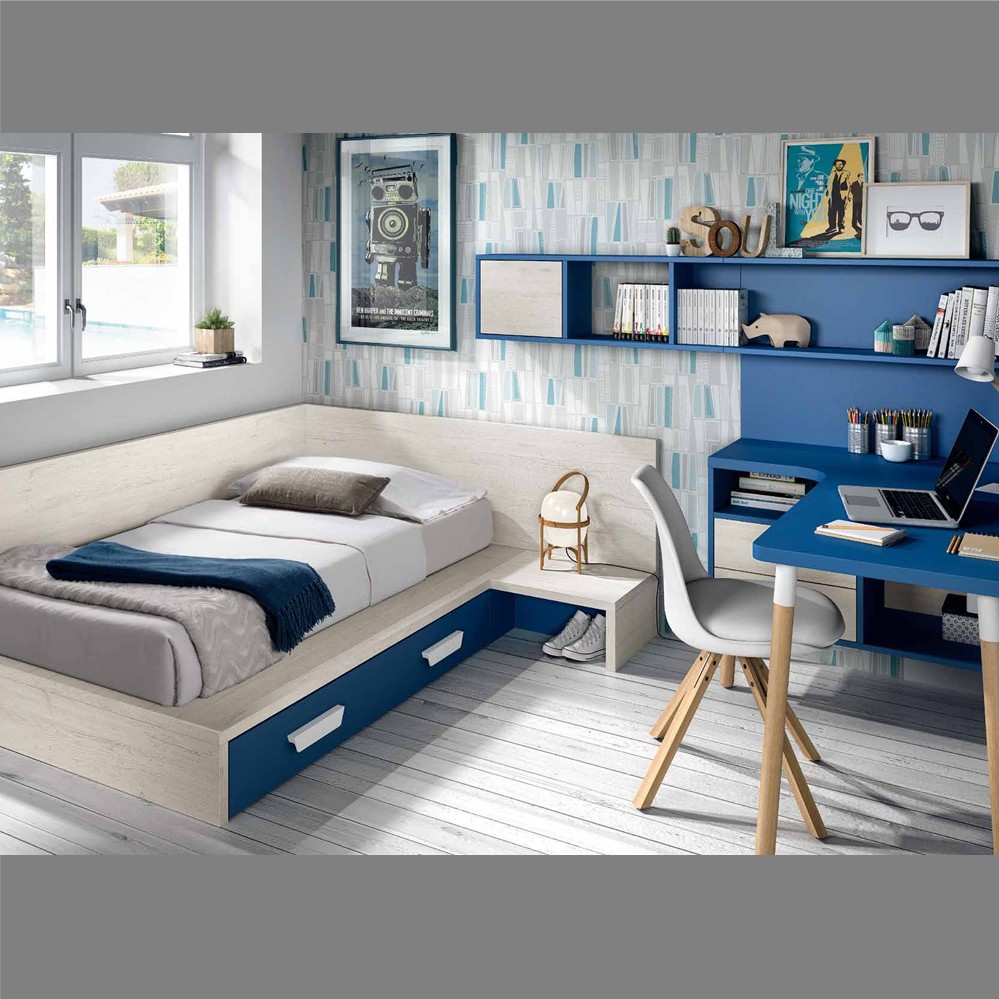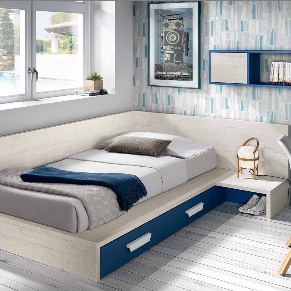 Cuando los niños se hacen adultos requieren un espacio diferente, practico con personalidad, que se adapten a sus nuevas necesidades y lejos de los aires infantiles de antes. Aquí te proponemos una idea diferente, una CAMA TATAMI que puede ser de 105,135 o 150 con 2 amplios cajones para aprovechar fácilmente toda la parte inferior de la cama. Su lateral sobresale a modo de mesita y además bordea la cama lateralmente y puedes usarlo como apoyo o improvisado asiento. Existen 3 medidas diferentes de ancho para cada una de las 3 opciones de colchón. Es decir en total 6 medidas a elegir. Y lo puedes completar con los cabeceros que te gusten que puedes combinar en los colores que quieras.