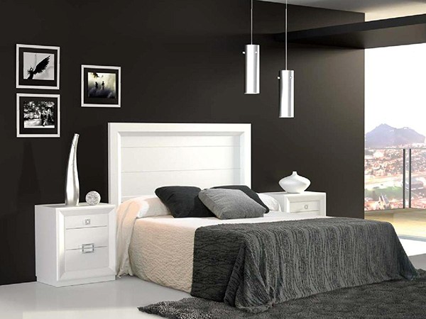 Dormitorio matrimonio lacado, compuesto por cabecero y 2 mesitas, máxima calidad, acabado en madera, 14 colores a elegir, 6 de barniz además plata, oro, blanco o ceniza. Existen cómoda, sinfonier y armarios a juego.