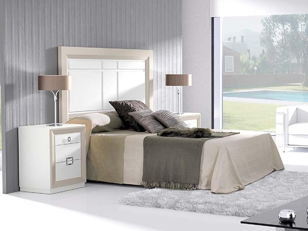 Dormitorio matrimonio lacado, compuesto por cabecero y 2 mesitas, máxima calidad, acabado en madera, 14 colores a elegir, 6 de barniz además plata, oro, blanco o ceniza. Existen cómoda, sinfonier y armarios a juego.