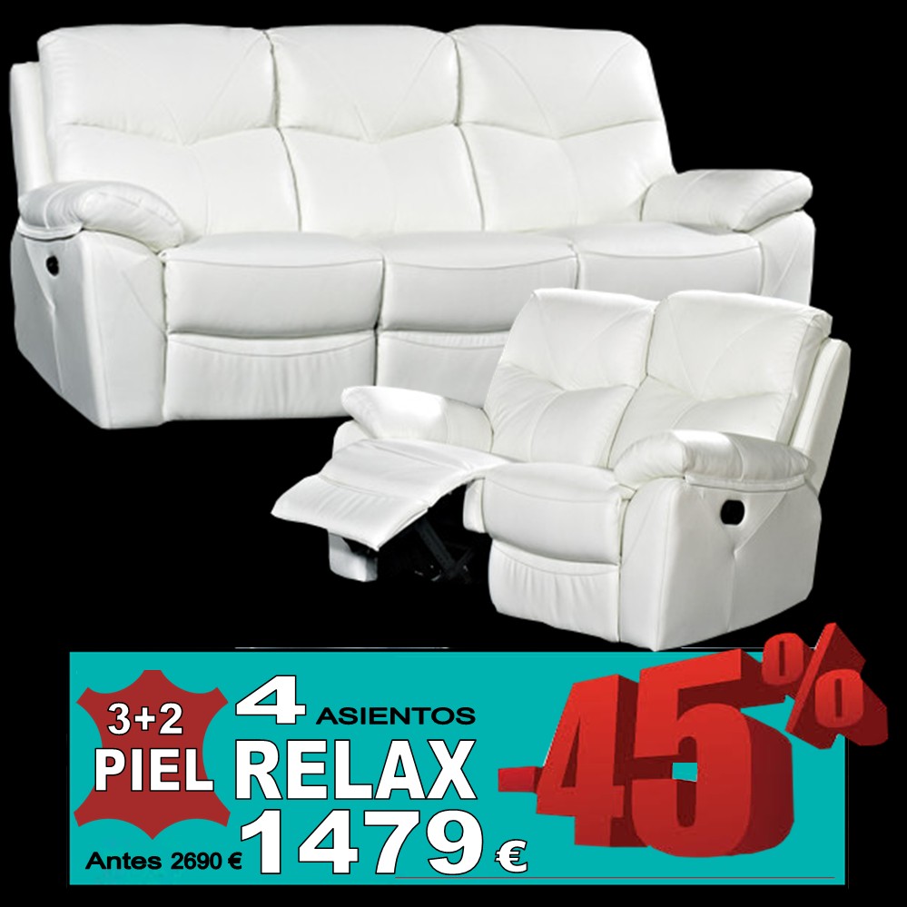 Sofá 3+2 plazas con 4 RELAX En PIEL POR SOLO 1479€