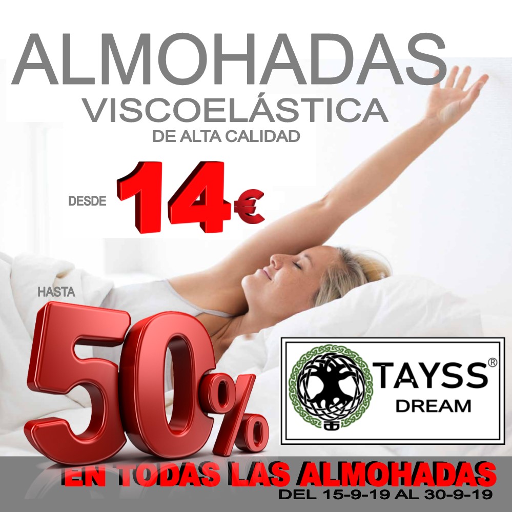 Aprovecha esta OFERTA en almohadas viscoelásticas de alta calidad desde 14€, todas las ALMOHADAS TAYSS DREAM te las llevas ahora con hasta un 50% de descuento.