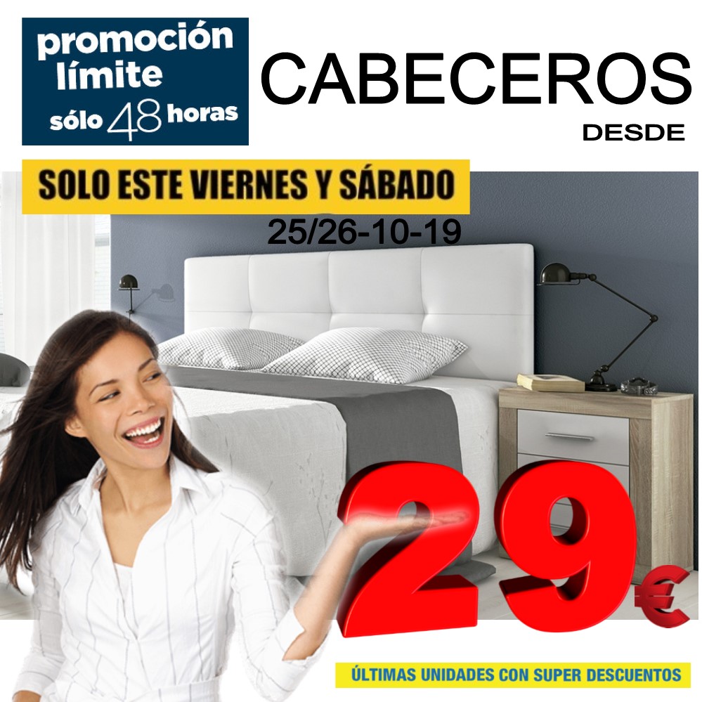 ULTIMAS UNIDADES, aprovecha esta oportunidad apta solo para los más rápidos, cabeceros para cama de 90 por 29€ y para cama de matrimonio por 39€, en colores blanco, chocolate y antracita. Y además descuentos especiales de hasta un 30% este fin de semana en una extensa selección de modelos, de todas las calidades y diseños.