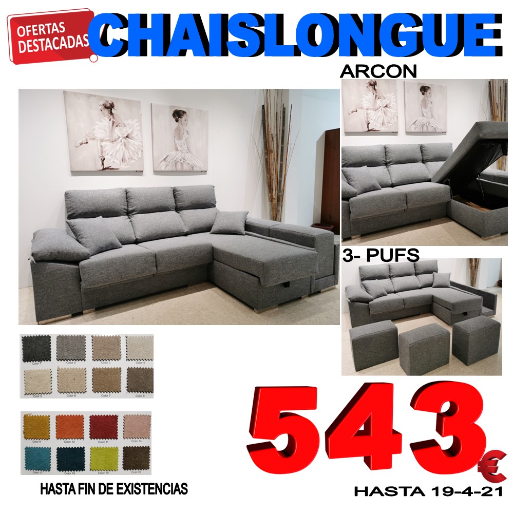 Chaislongues desde las más económicas a las de más calidad y diseño, todas en oferta. De dos plazas, de tres plazas, con arcón, con pufs, con sillones relax… de todos los diseños y precios.