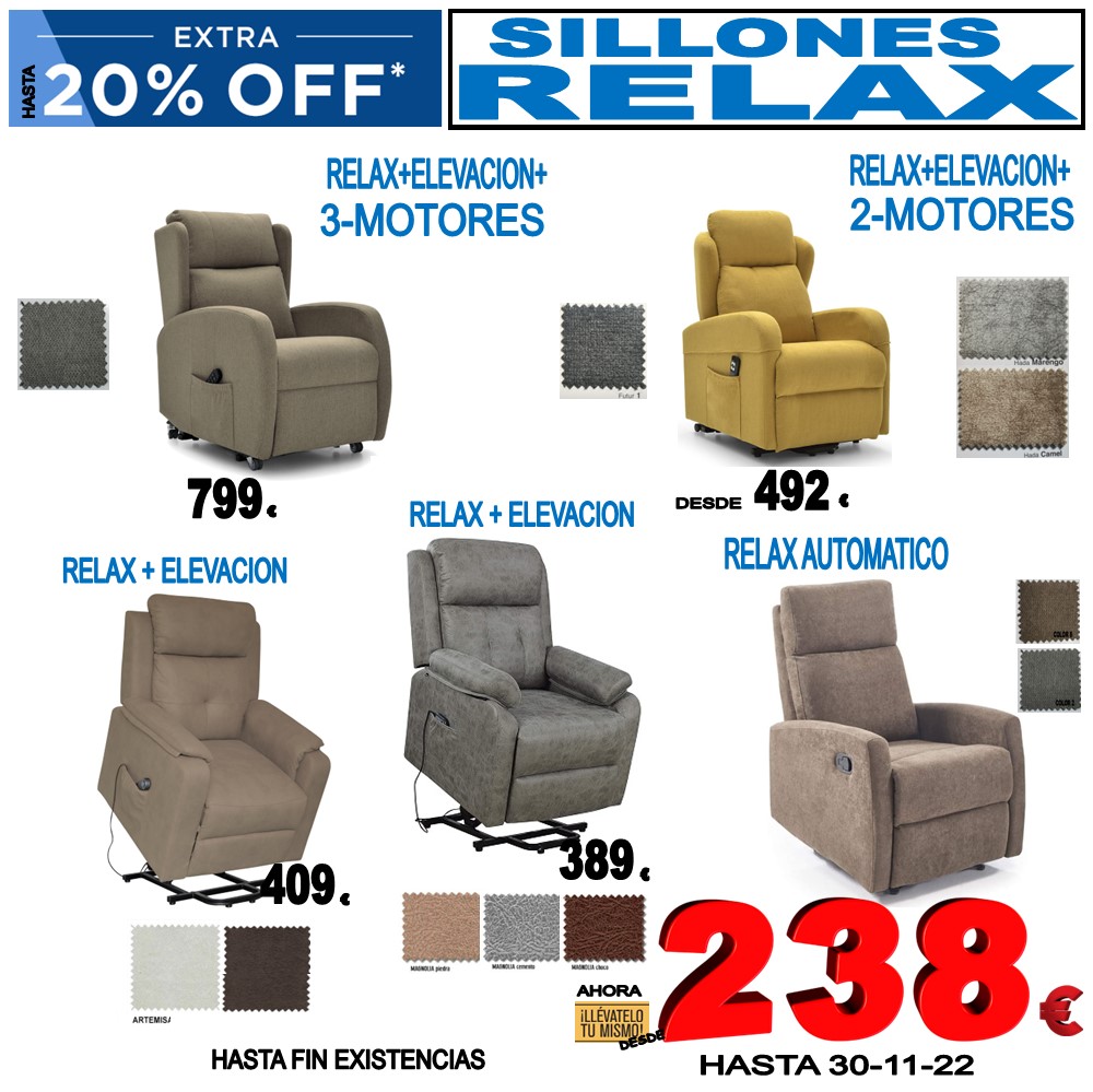 Ven a ver nuestra amplia gama de sillones relax de todas las calidades y precios ahora en promoción con descuentos de hasta el 20%.
