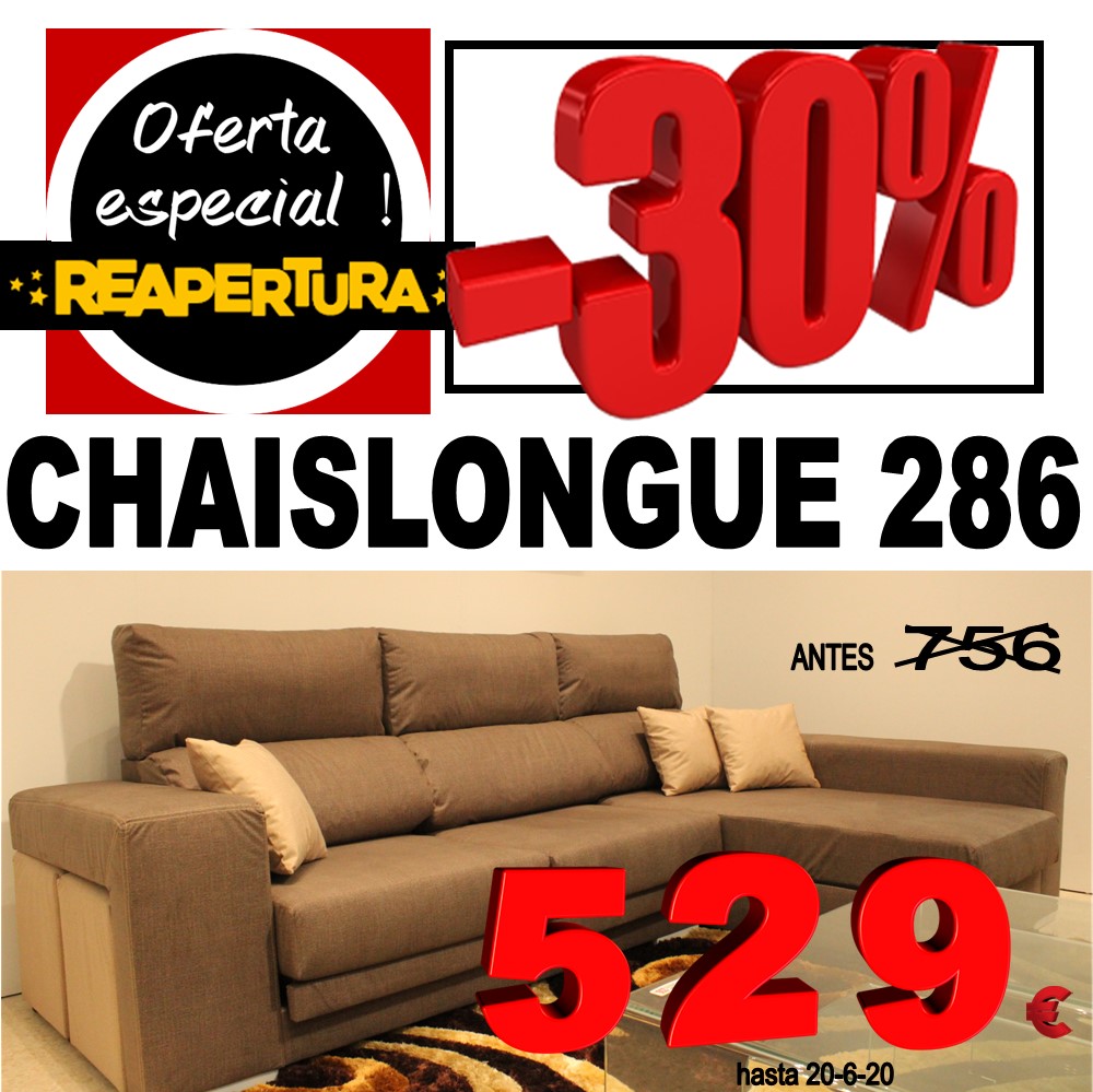 Por fin reabrimos nuestras instalaciones, y en BANDECOR lo queremos celebrar contigo poniendo nuestro granito de arena para hacerte la vuelta más fácil, TODOS nuestros artículos en stock con descuentos de hasta el 60%. Sofás, colchones, sillones, sillas, dormitorios… Todo con descuentos hasta fin de existencias. Mira esta amplia chaislongue de 285, con cabezales reclinables, asientos extraíbles y con dos pufs ahora por solo 529€. solo hasta el 20-6-20.
