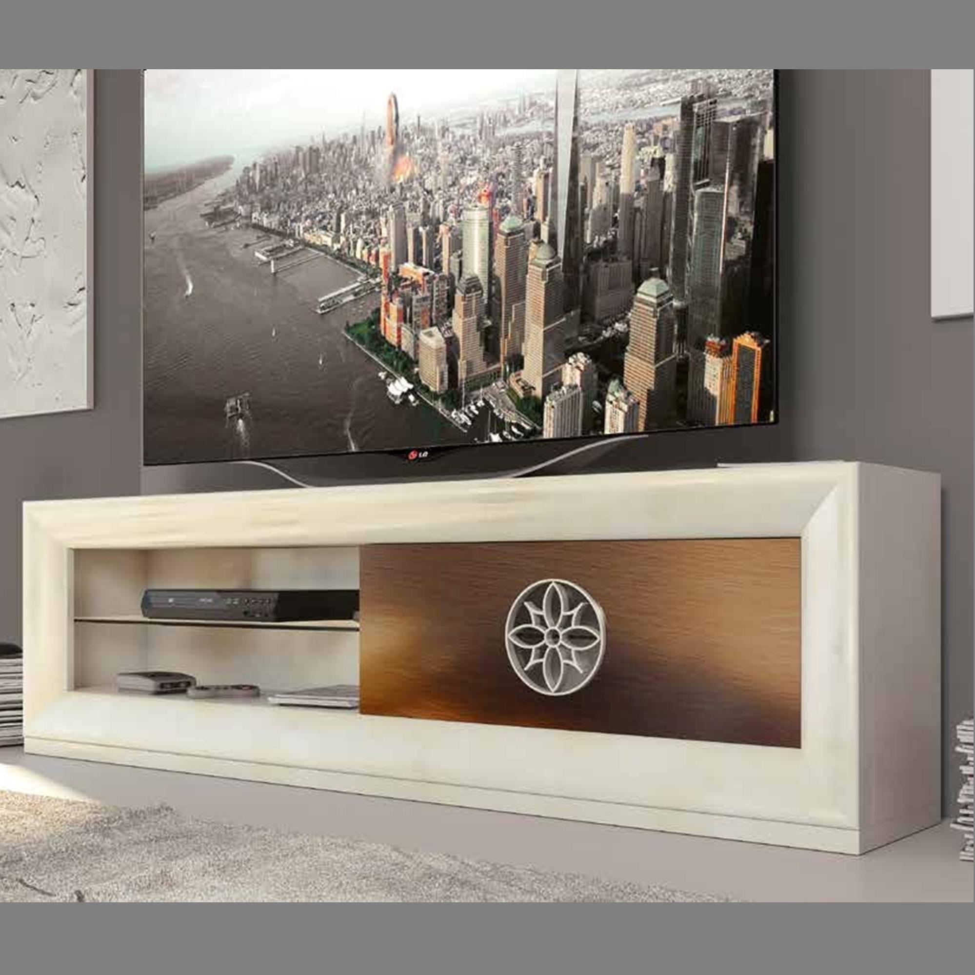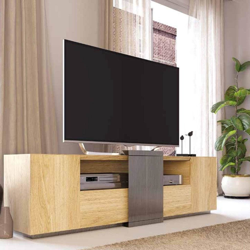 Mesa TV acabado ROBLE y METALIZADO