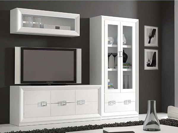 Modular de línea moderna, máxima calidad, acabado en madera, 14 colores a elegir, 6 de barniz además plata, oro, blanco o ceniza. Existen más composiciones de distintas medidas y más piezas para combinar, además de aparador y vitrina, así como mesas de centro y comedor.