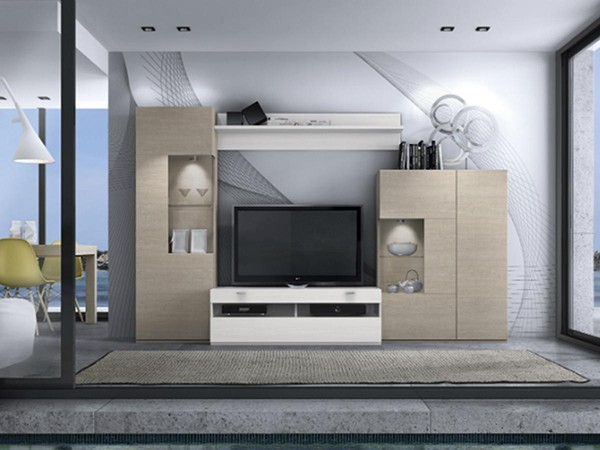 Modular de línea moderna. Existen más composiciones de distintas medidas y más piezas para combinar, además de aparador y vitrina, así como mesas de centro y comedor a juego. Ocho colores distintos a elegir para combinar, con unos acabados perfectos y de calidad.