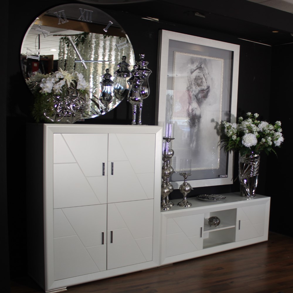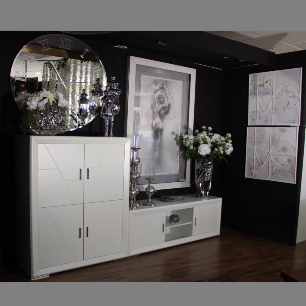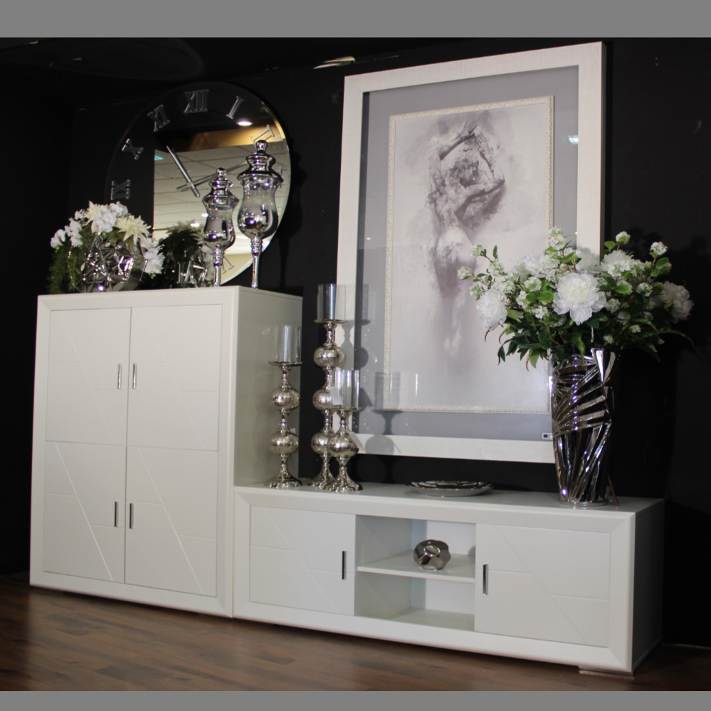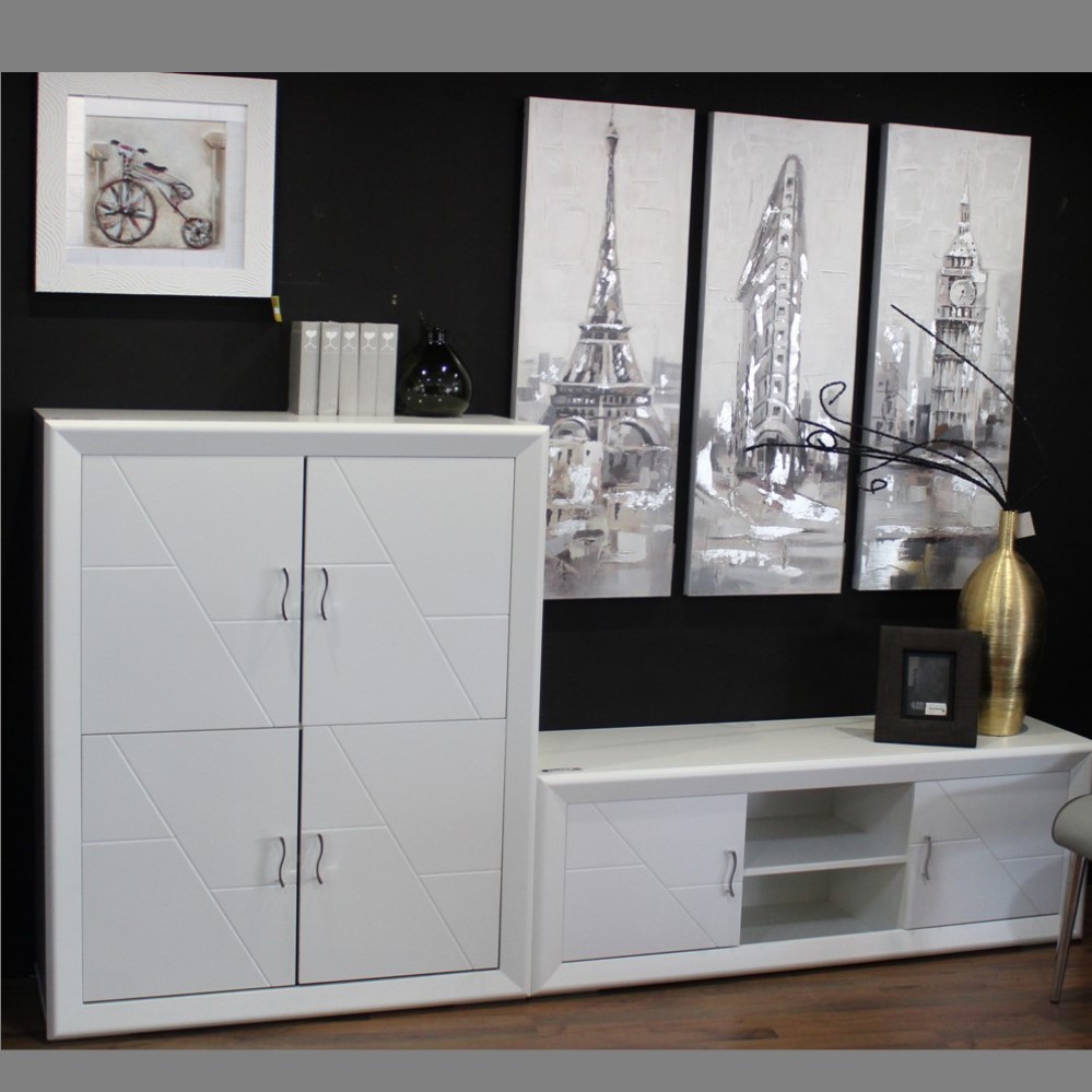 En Ban Decor te proponemos este modular salón de 240 con frentes lacados por solo 530€. En líneas rectas, acabado en blanco. Con gran capacidad de almacenamiento a pesar de su aparente ligereza. Compuesto de un módulo TV de 140 y un practico modulo vajillero con puertas de gran capacidad. Existen todo tipo de piezas a juego para ampliar o completar tu salón, vitrinas, estanterías, aparadores… con colores a elegir, blanco, nogal o bicolor para hacer la combinación que más se adapte a tus gustos y multitud de piezas con diferentes medidas, no te lo pierdas te esperamos.