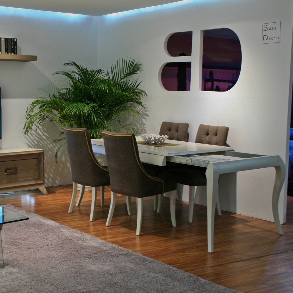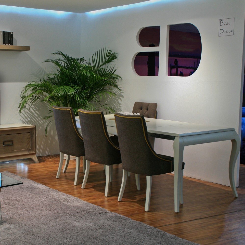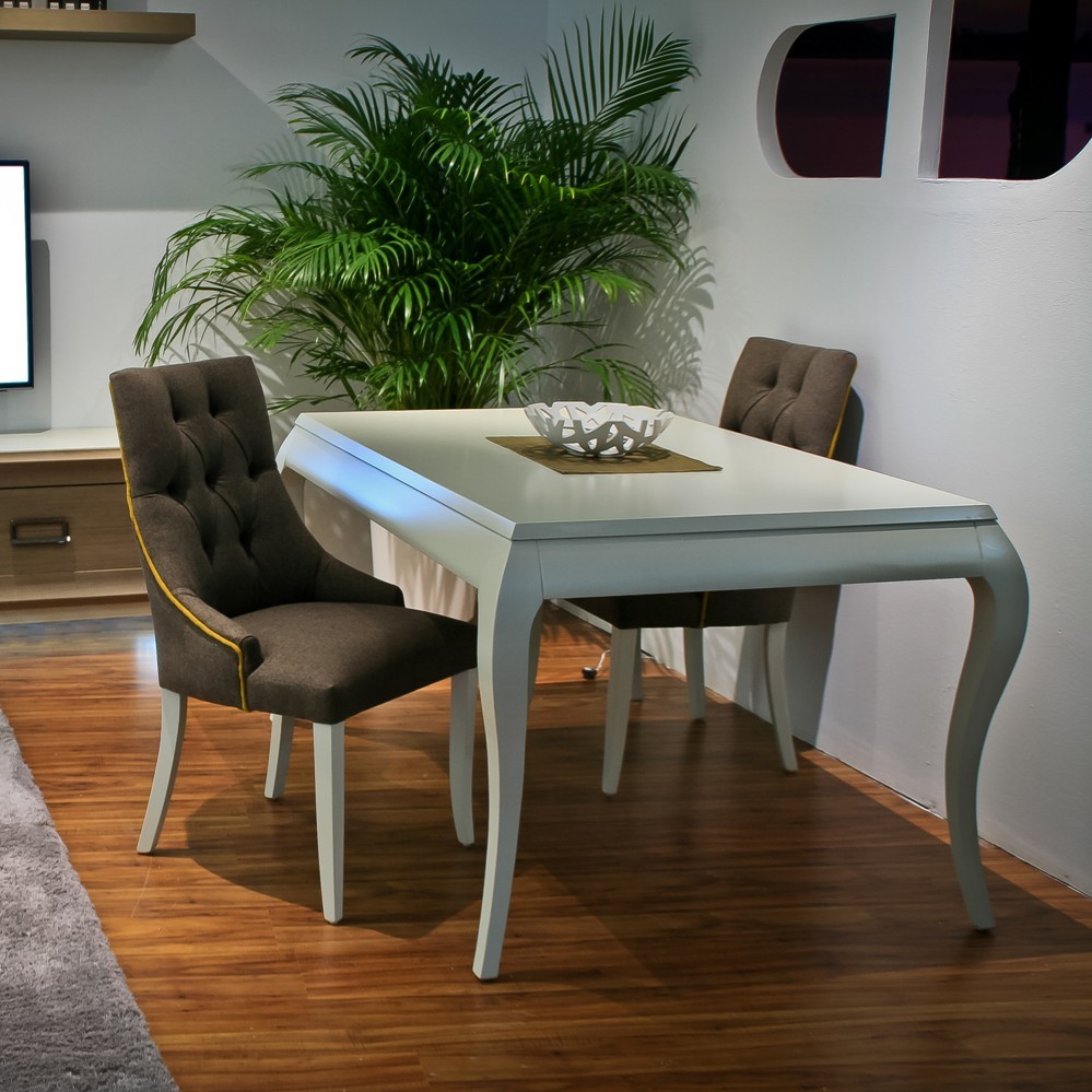 Mesa de fabricación nacional acabada en madera, solida y fuerte con patas “Isabelinas” y tapa biselada. Puede pedirse en 15 colores diferentes de acabado barnizado o incluso en color muestra para igualar con otros muebles. Permite opciones de medidas especiales bajo presupuesto.