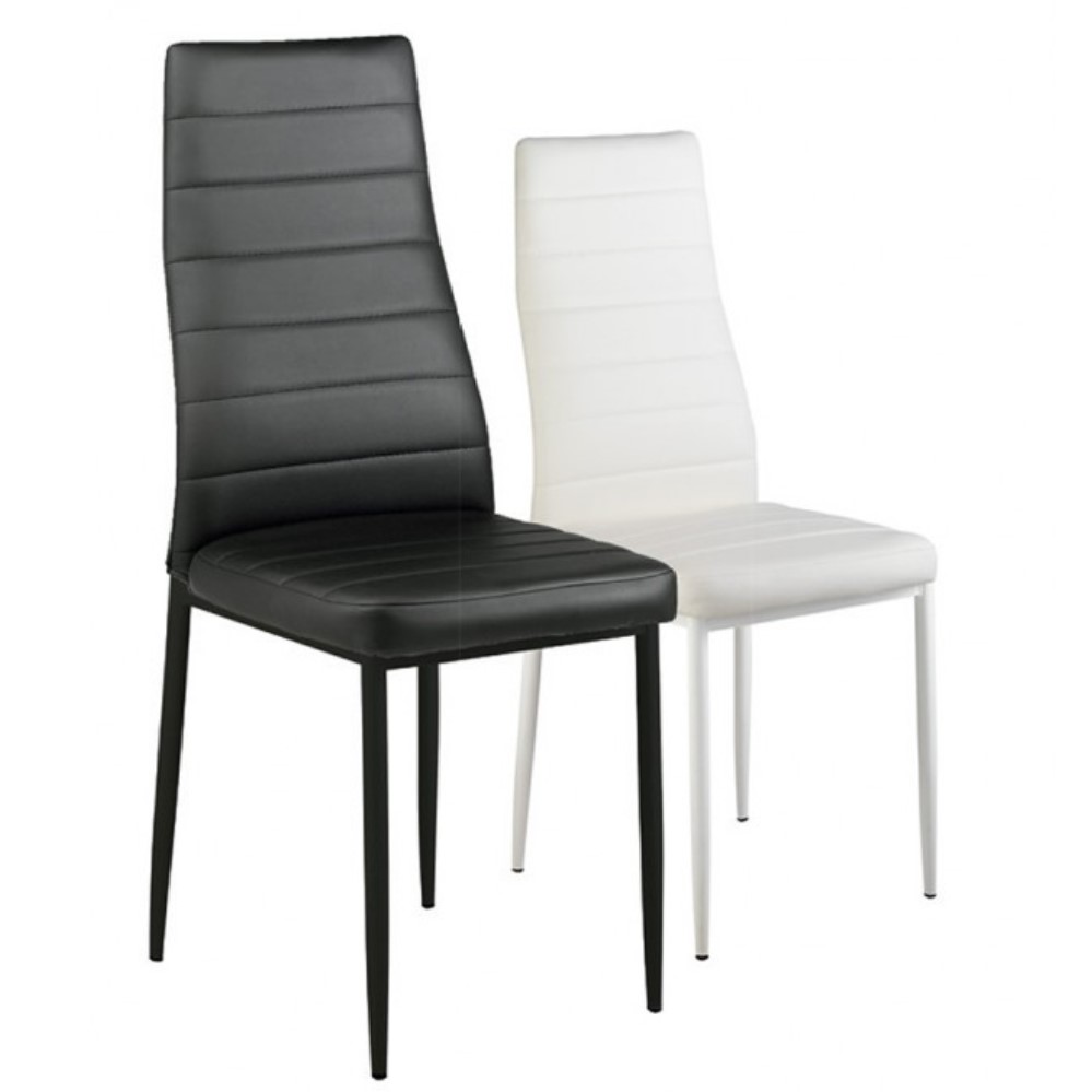 Silla de gran resistencia y chasis metálico TOTALMENTE SOLDADO, no en KIT, lo que garantiza su fortaleza. Respaldo con forma para una mejor adaptación a la espalda y patas en blanco o negro a juego color tapizado.