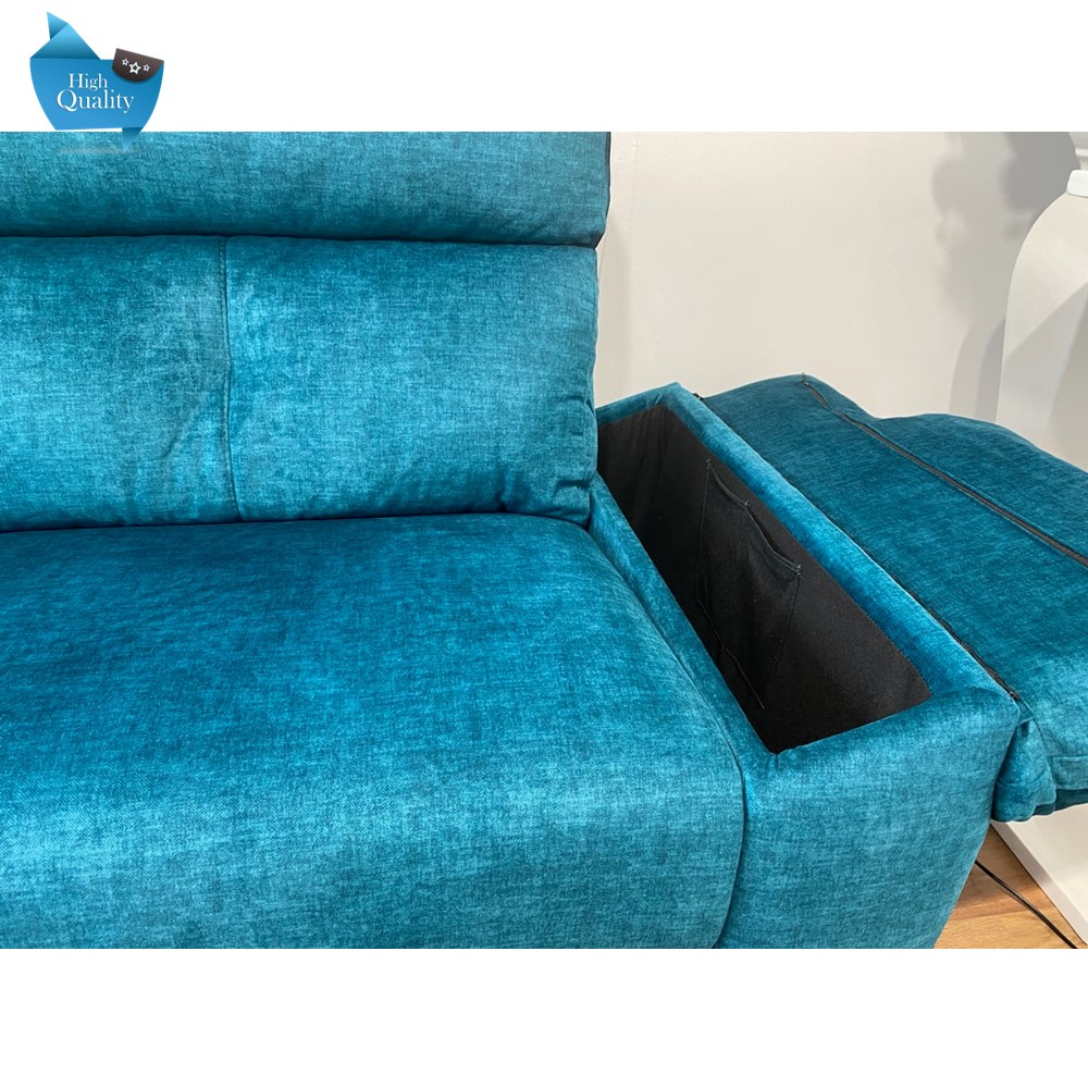 Sus brazos cómodos y acolchados se abren y son útiles para guardar cosas, pero además tienen el detalle de llevar incorporados 2 huecos para los mandos, la TV, el aire… Para que lo tengas todo a mano y nada falte en tu comodidad.