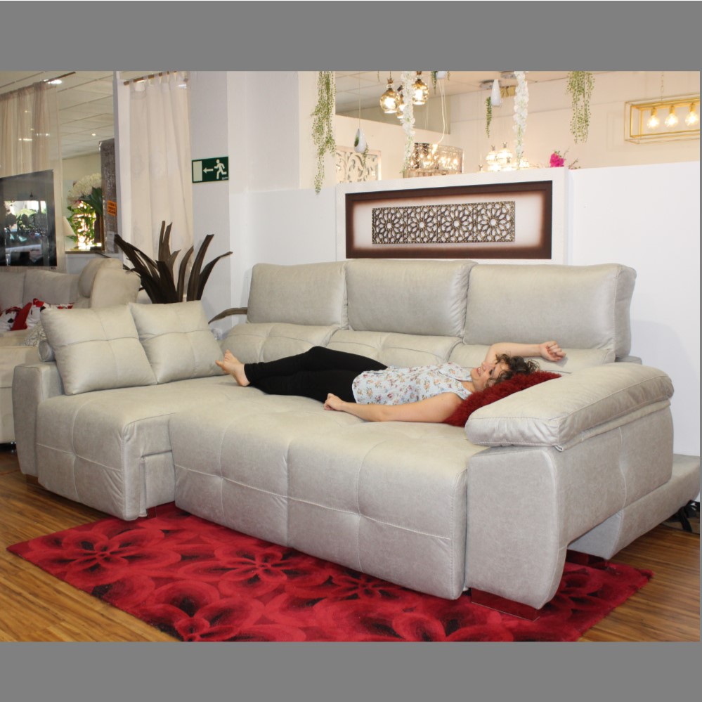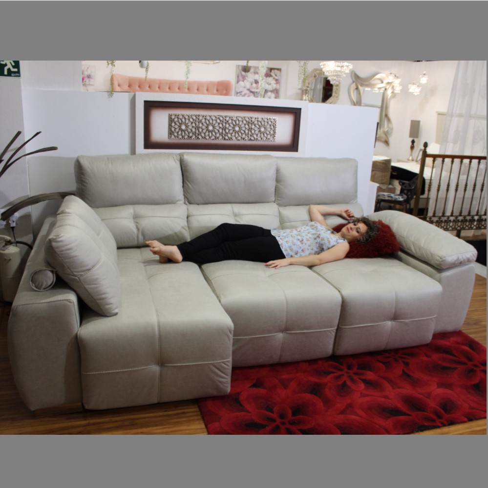 ¿A veces tienes invitados y os falta espacio para sentaros? Aquí tienes la solución ideal. En tu día a día es una chaislongue de medidas normales para tener amplitud en tu salón, pero cuando sea necesario puedes extender la chais. y el brazo para poder sentar a 2 personas con suficiente espacio. Y si se quisieran quedar a dormir extendiendo los otros 2 asientos lo transformas en una amplia cama con railes, ruedas y apoyo a suelo para un uso fácil diario y con total seguridad. También en tu día a día puedes usarlo como tres cómodas chaislongues para estar cómodamente con los pies extendidos. Ambos brazos se desplazan al mismo tiempo que los asientos para mantener siempre una cuidada estética.