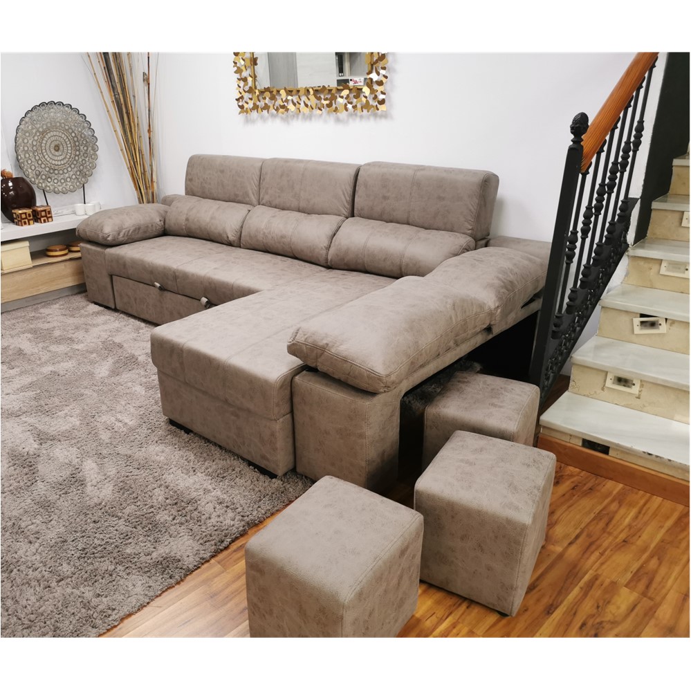 Chaise longue 290 cm, convertible en cama, con pufs, cabezales reclinables y desenfundable.