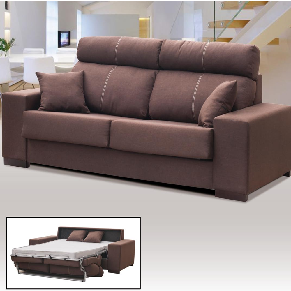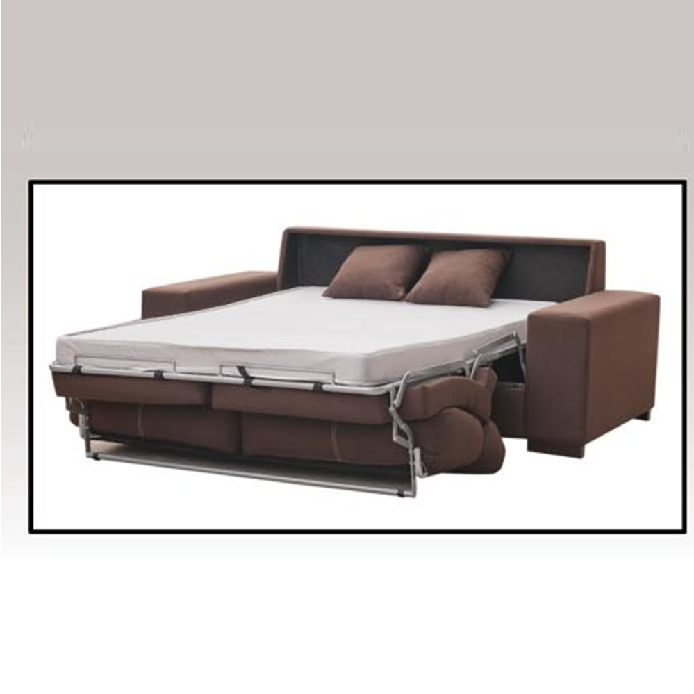 Sofá 3 plazas, cómodo como sofá y como cama, con fácil mecanismo de apertura. No hay que quitar ningún cojín para abrirlo. Estructura de acero de con malla electrosoldada. Cojines de asiento y respaldo desenfundables. Distintas tapicerías y colores a elegir.